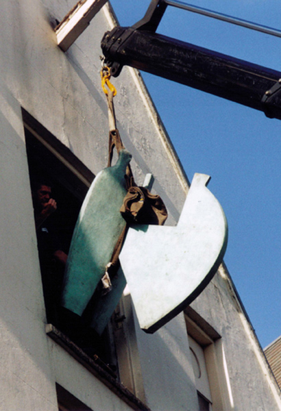 Beeld hijsen naar het atelier aan de Wibautstraat