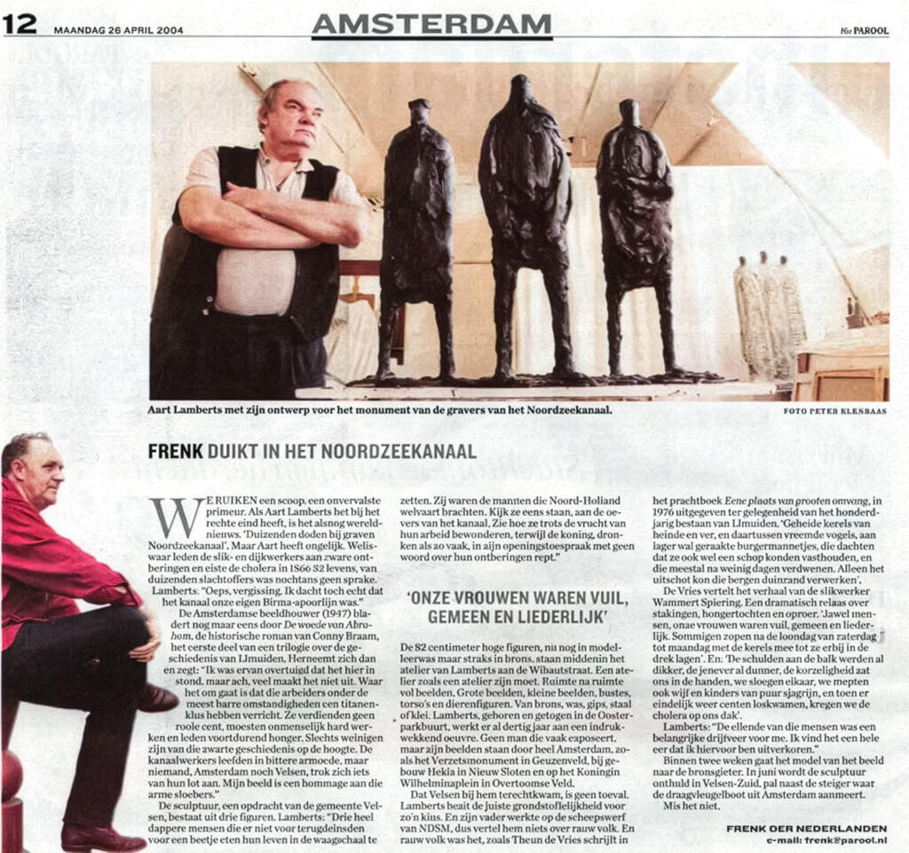 Frenk duikt in het Noordzeekanaal Het Parool 12 april 2005 Monument voor de Kanaalgravers van het Noordzeekanaal Door Frenk der Nederlanden